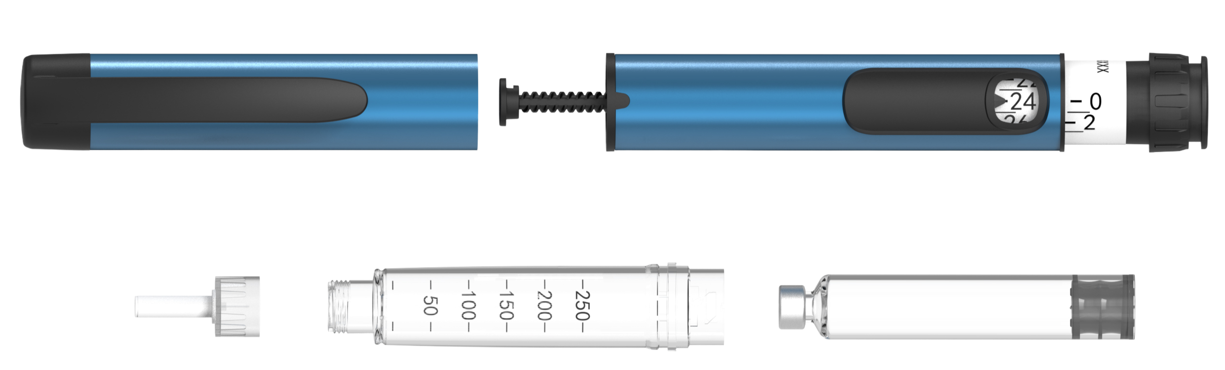 Reusable.The injection pen shall replace the cartridge and be used again when the liquid medicine is fully injected |